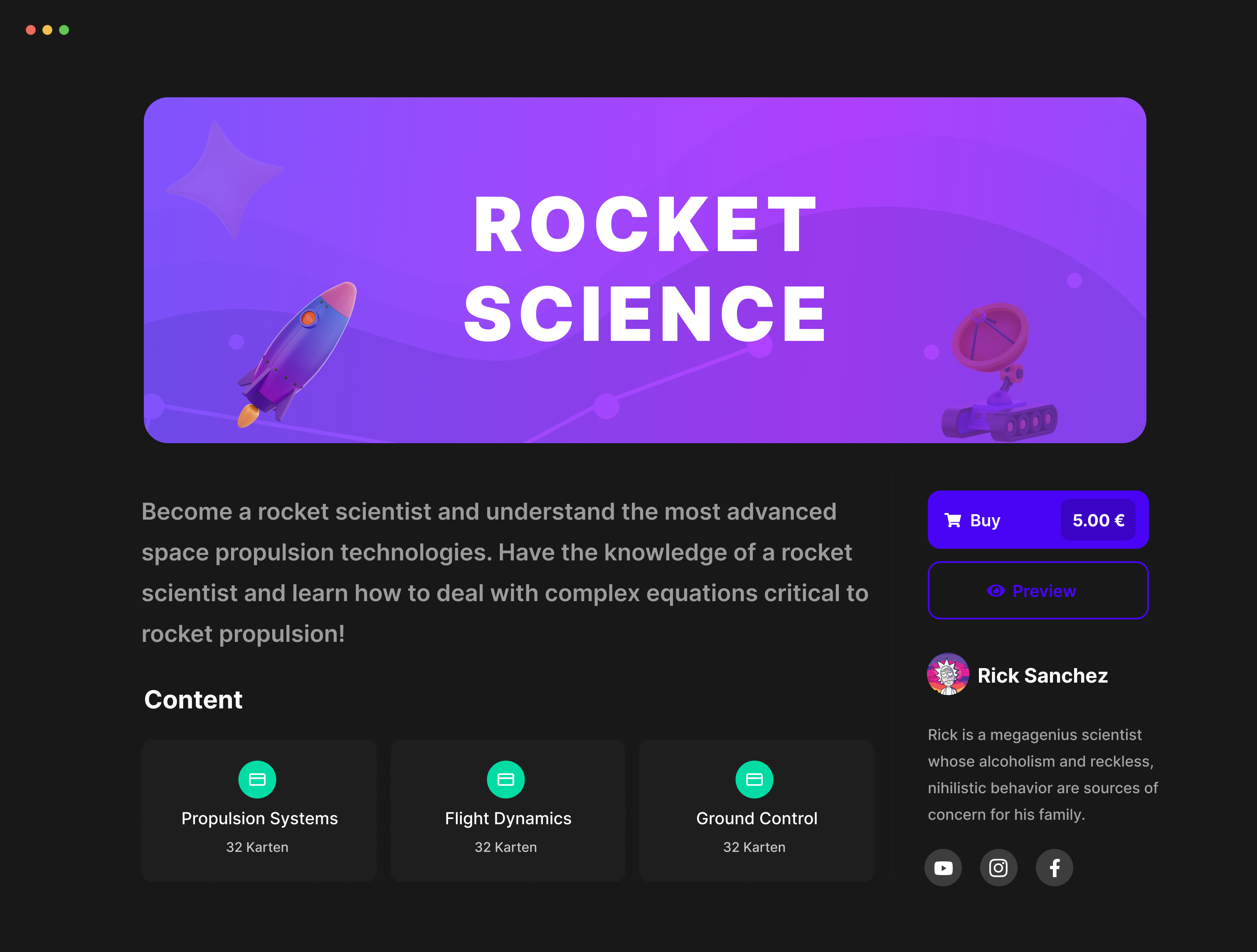 Create interactive courses, flashcards or quizzes in no time and offer them for sale.
